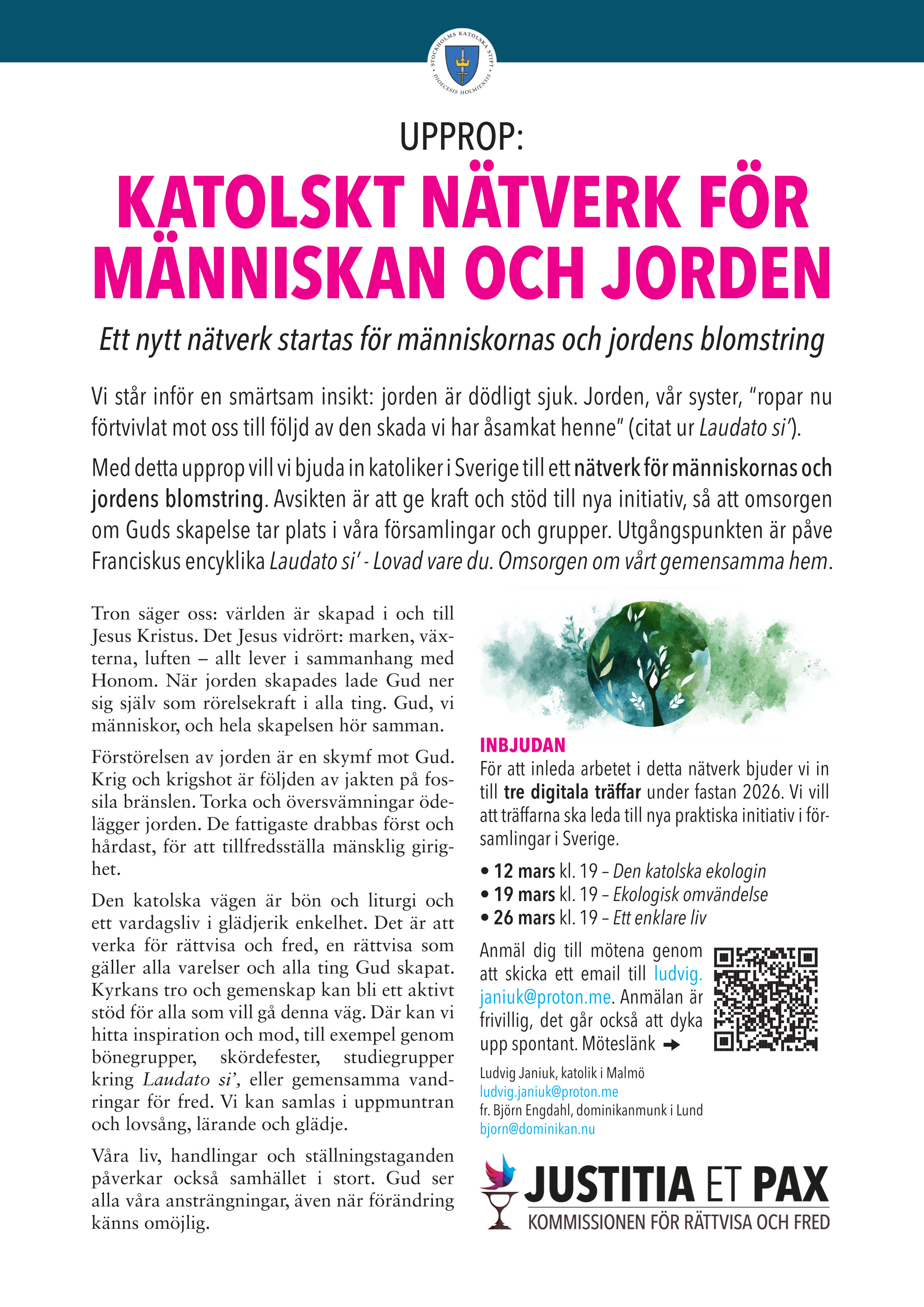 Katolska nätverket för människorna och jorden är igång, fler möten annonserade